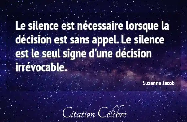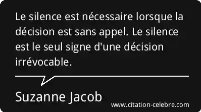 Le silence est nécessaire lorsque la décision est sans appel. Le silence est le seul signe d'une décision irrévocable.