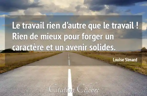 Le travail rien d'autre que le travail ! Rien de mieux pour forger un caractère et un avenir solides.
