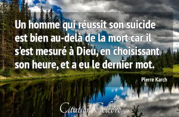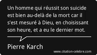 Un homme qui réussit son suicide est bien au-delà de la mort car il s'est mesuré à Dieu, en choisissant son heure, et a eu le dernier mot.