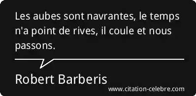 Citation Robert Barberis temps : Les aubes sont navrantes, le temps n'a point de rives,...