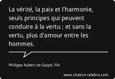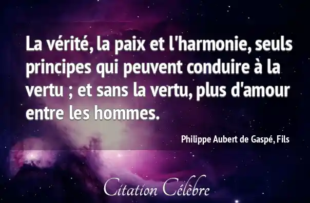 La vérité, la paix et l'harmonie, seuls principes qui peuvent conduire à la vertu ; et sans la vertu, plus d'amour entre les hommes.