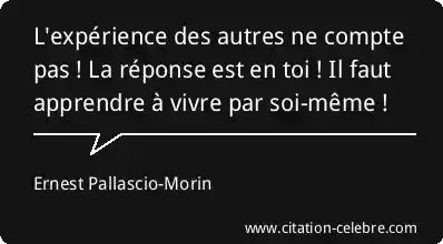 L'expérience des autres ne compte pas ! La réponse est en toi ! Il faut apprendre à vivre par soi-même !
