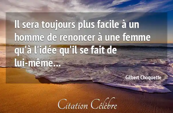 Il sera toujours plus facile à un homme de renoncer à une femme qu'à l'idée qu'il se fait de lui-même...