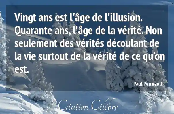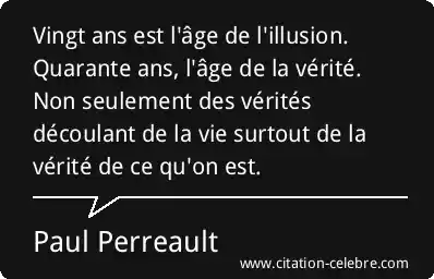 Vingt ans est l'âge de l'illusion. Quarante ans, l'âge de la vérité. Non seulement des vérités découlant de la vie surtout de la vérité de ce qu'on est.