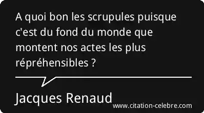 Citation Jacques Renaud monde : A quoi bon les scrupules puisque c'est du fond du...