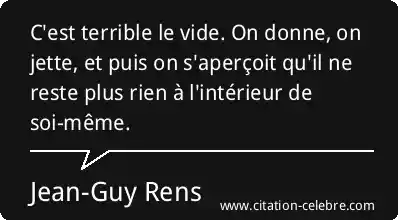 C'est terrible le vide. On donne, on jette, et puis on s'aperçoit qu'il ne reste plus rien à l'intérieur de soi-même.