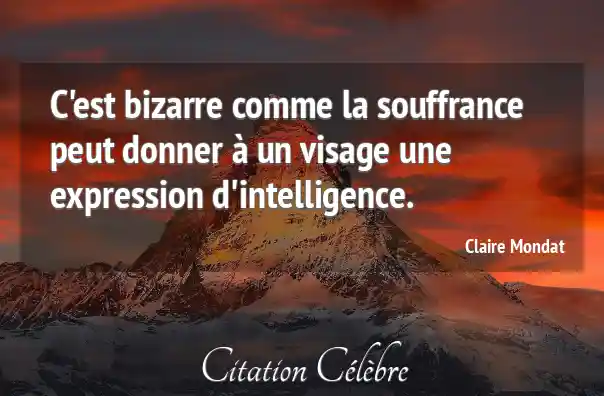 C'est bizarre comme la souffrance peut donner à un visage une expression d'intelligence.