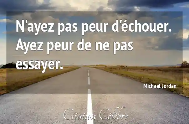 - Style : La phrase est courte, directe et utilise une structure contrastée ("peur d'échouer" versus "peur de ne pas essayer"), ce qui la rend percutante et facile à mémoriser. C'est une antithèse rhétorique.
