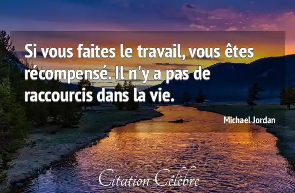 Si vous faites le travail, vous êtes récompensé. Il n'y a pas de raccourcis dans la vie.