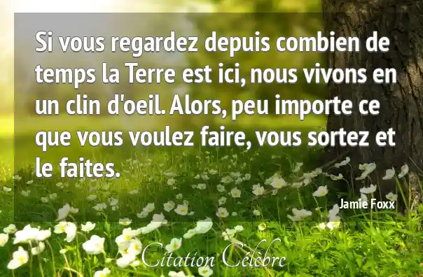Si vous regardez depuis combien de temps la Terre est ici, nous vivons en un clin d'oeil. Alors, peu importe ce que vous voulez faire, vous sortez et le faites.
