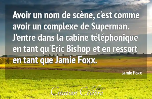 Avoir un nom de scène, c'est comme avoir un complexe de Superman. J'entre dans la cabine téléphonique en tant qu'Eric Bishop et en ressort en tant que Jamie Foxx.
