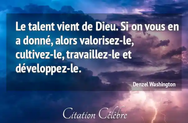 Le talent vient de Dieu. Si on vous en a donné, alors valorisez-le, cultivez-le, travaillez-le et développez-le.