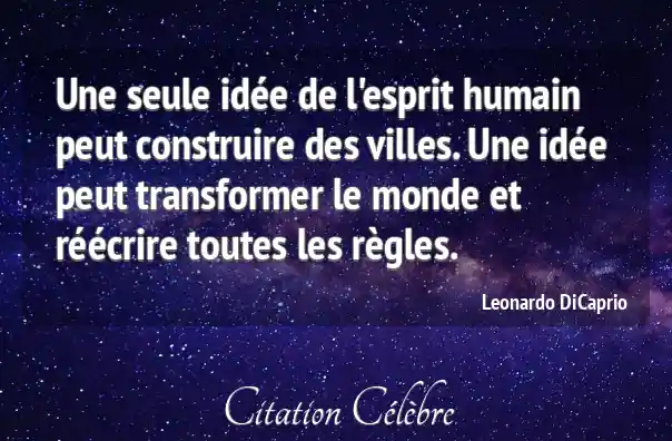 Une seule idée de l'esprit humain peut construire des villes. Une idée peut transformer le monde et réécrire toutes les règles.