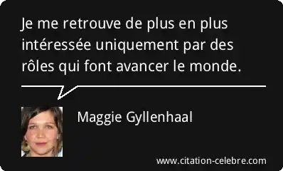 Je me retrouve de plus en plus intéressée uniquement par des rôles qui font avancer le monde.