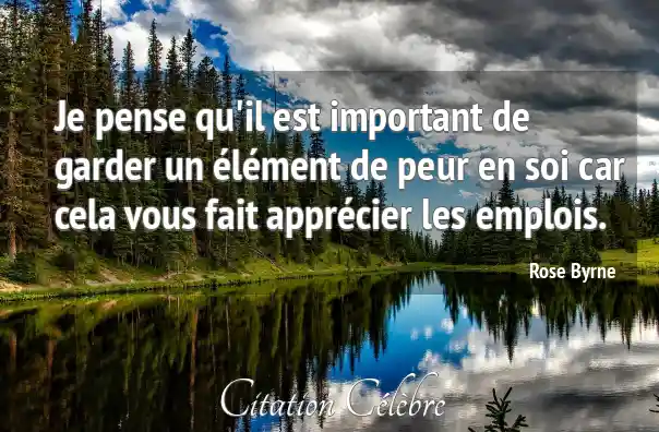 Je pense qu'il est important de garder un élément de peur en soi car cela vous fait apprécier les emplois.