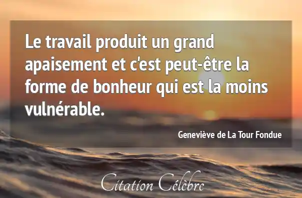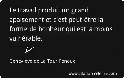 Le travail produit un grand apaisement et c'est peut-être la forme de bonheur qui est la moins vulnérable.