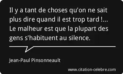 Il y a tant de choses qu'on ne sait plus dire quand il est trop tard !... Le malheur est que la plupart des gens s'habituent au silence.