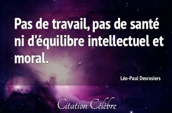 Pas de travail, pas de santé ni d'équilibre intellectuel et moral.