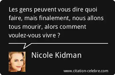 Les gens peuvent vous dire quoi faire, mais finalement, nous allons tous mourir, alors comment voulez-vous vivre ?