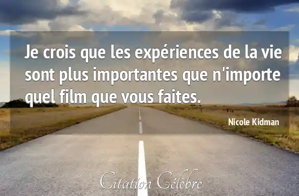 Je crois que les expériences de la vie sont plus importantes que n'importe quel film que vous faites.