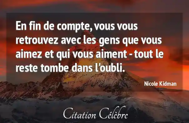 En fin de compte, vous vous retrouvez avec les gens que vous aimez et qui vous aiment - tout le reste tombe dans l'oubli.