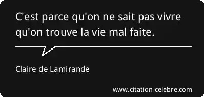 C'est parce qu'on ne sait pas vivre qu'on trouve la vie mal faite.