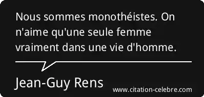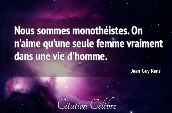 Nous sommes monothéistes. On n'aime qu'une seule femme vraiment dans une vie d'homme.