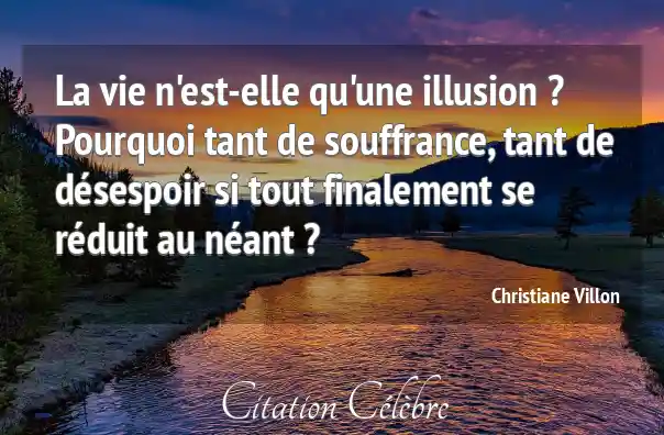 La vie n'est-elle qu'une illusion ? Pourquoi tant de souffrance, tant de désespoir si tout finalement se réduit au néant ?
