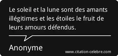 Le soleil et la lune sont des amants illégitimes et les étoiles le fruit de leurs amours défendus.