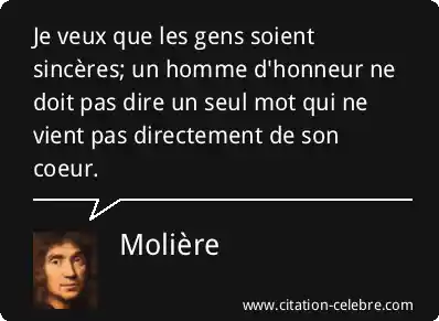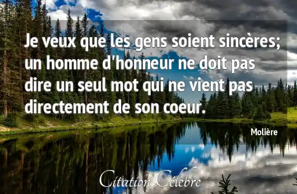 Je veux que les gens soient sincères; un homme d'honneur ne doit pas dire un seul mot qui ne vient pas directement de son coeur.