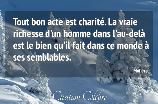 Tout bon acte est charité. La vraie richesse d'un homme dans l'au-delà est le bien qu'il fait dans ce monde à ses semblables.