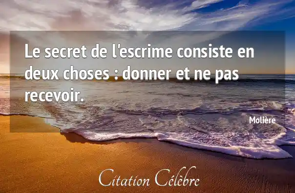 Citation Molière choses : Le secret de l'escrime consiste en deux choses : donner...