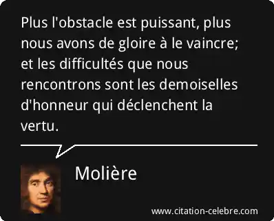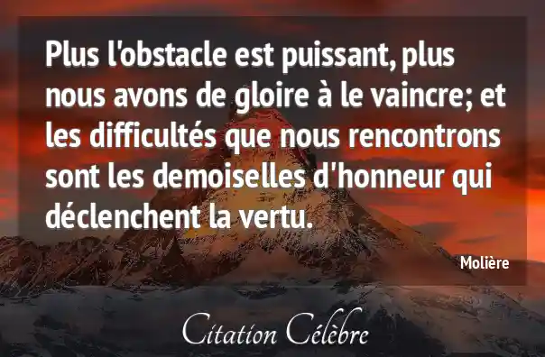 Plus l'obstacle est puissant, plus nous avons de gloire à le vaincre; et les difficultés que nous rencontrons sont les demoiselles d'honneur qui déclenchent la vertu.