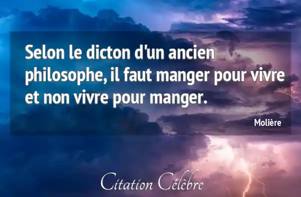 Selon le dicton d'un ancien philosophe, il faut manger pour vivre et non vivre pour manger.