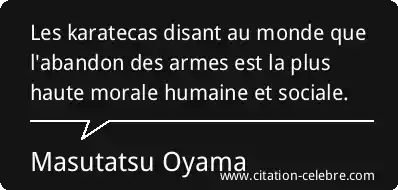 Les karatecas disant au monde que l'abandon des armes est la plus haute morale humaine et sociale.