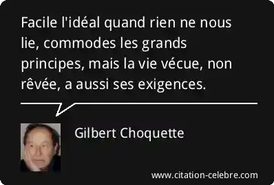 Facile l'idéal quand rien ne nous lie, commodes les grands principes, mais la vie vécue, non rêvée, a aussi ses exigences.