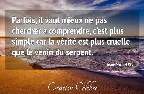 Parfois, il vaut mieux ne pas chercher à comprendre, c'est plus simple car la vérité est plus cruelle que le venin du serpent.