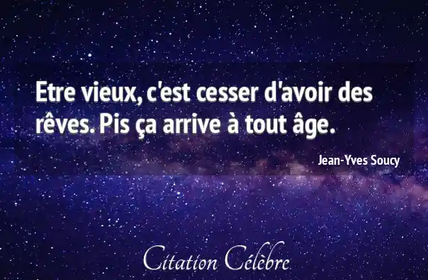 Etre vieux, c'est cesser d'avoir des rêves. Pis ça arrive à tout âge.