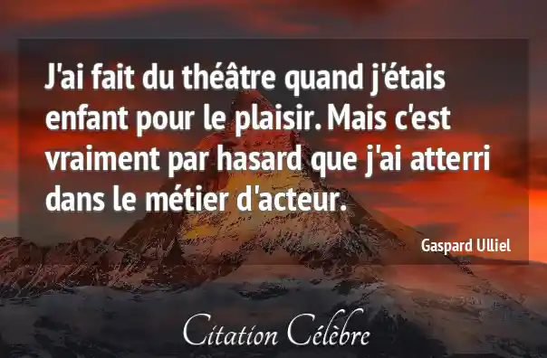 J'ai fait du théâtre quand j'étais enfant pour le plaisir. Mais c'est vraiment par hasard que j'ai atterri dans le métier d'acteur.