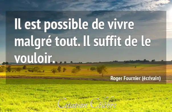 Citation Roger Fournier (écrivain) vivre : Il est possible de vivre malgré tout. Il suffit de...