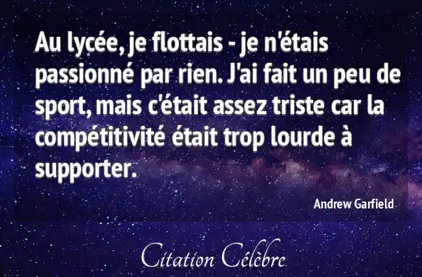 Au lycée, je flottais - je n'étais passionné par rien. J'ai fait un peu de sport, mais c'était assez triste car la compétitivité était trop lourde à supporter.
