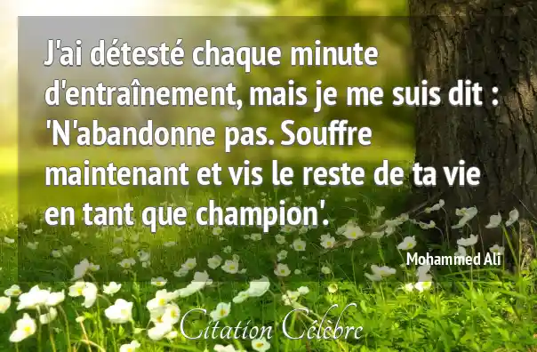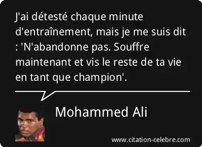 J'ai détesté chaque minute d'entraînement, mais je me suis dit : 'N'abandonne pas. Souffre maintenant et vis le reste de ta vie en tant que champion'.