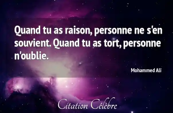 Quand tu as raison, personne ne s'en souvient. Quand tu as tort, personne n'oublie.