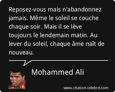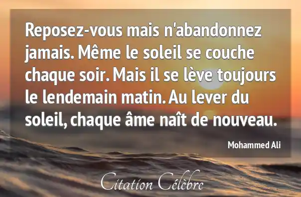 Reposez-vous mais n'abandonnez jamais. Même le soleil se couche chaque soir. Mais il se lève toujours le lendemain matin. Au lever du soleil, chaque âme naît de nouveau.