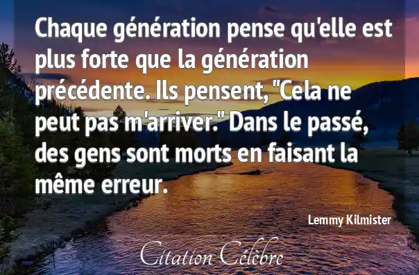 Chaque génération pense qu'elle est plus forte que la génération précédente. Ils pensent, "Cela ne peut pas m'arriver." Dans le passé, des gens sont morts en faisant la même erreur.