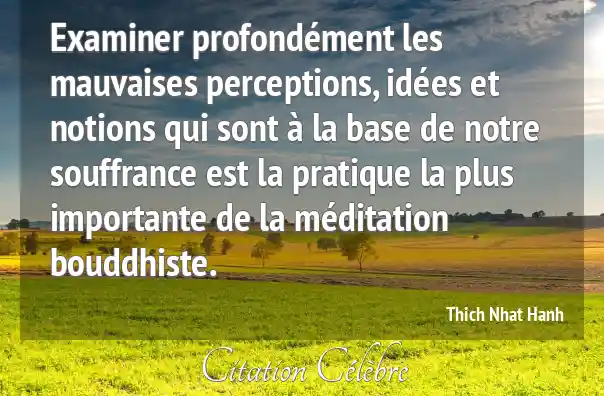 Examiner profondément les mauvaises perceptions, idées et notions qui sont à la base de notre souffrance est la pratique la plus importante de la méditation bouddhiste.
