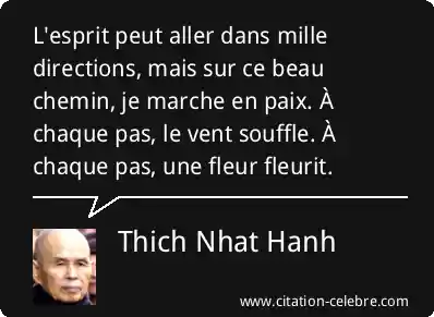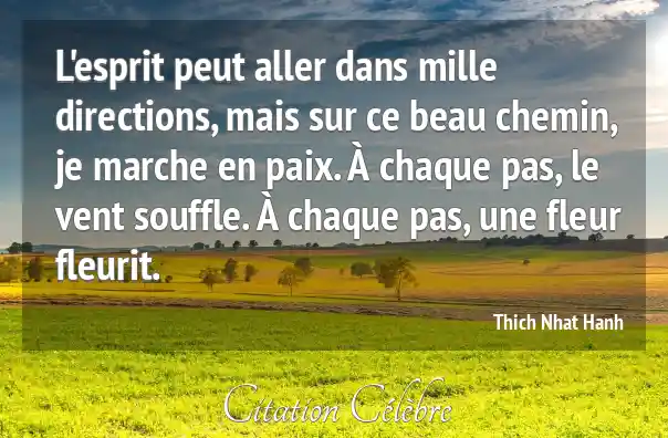 L'esprit peut aller dans mille directions, mais sur ce beau chemin, je marche en paix. À chaque pas, le vent souffle. À chaque pas, une fleur fleurit.