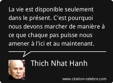 La vie est disponible seulement dans le présent. C'est pourquoi nous devons marcher de manière à ce que chaque pas puisse nous amener à l'ici et au maintenant.