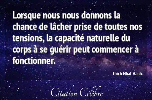 Lorsque nous nous donnons la chance de lâcher prise de toutes nos tensions, la capacité naturelle du corps à se guérir peut commencer à fonctionner.