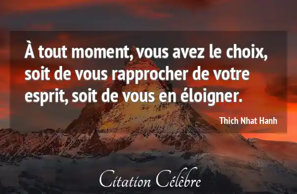 À tout moment, vous avez le choix, soit de vous rapprocher de votre esprit, soit de vous en éloigner.